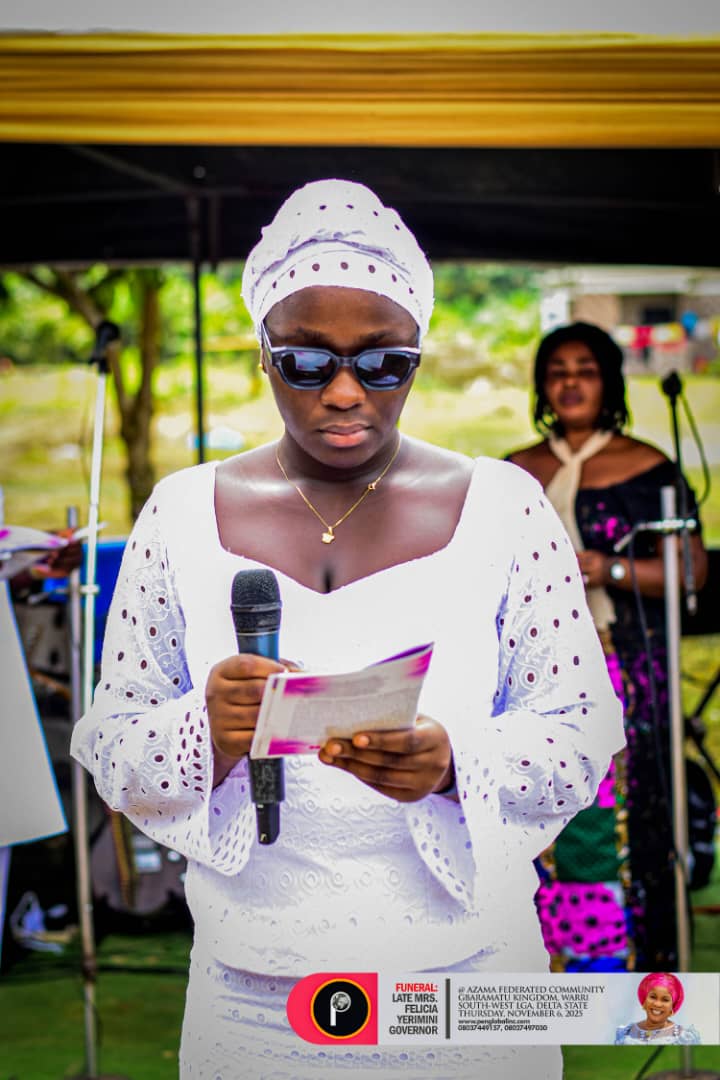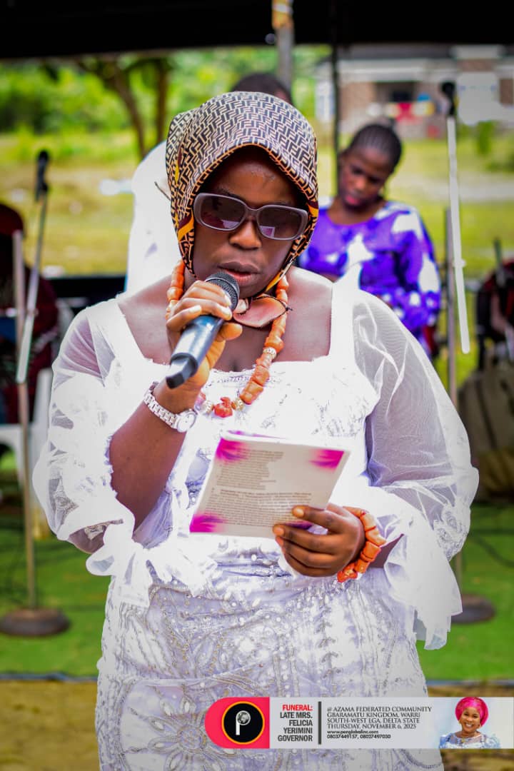 The remains of the late Mrs. Felicia Yerimini Jonathan Governor was laid to rest in her hometown, Azama Federated Community in Gbaramatu Kingdom, Warri South-West Local Government Area of Delta State, after a Christian funeral, on Thursday, November 6, 2025.