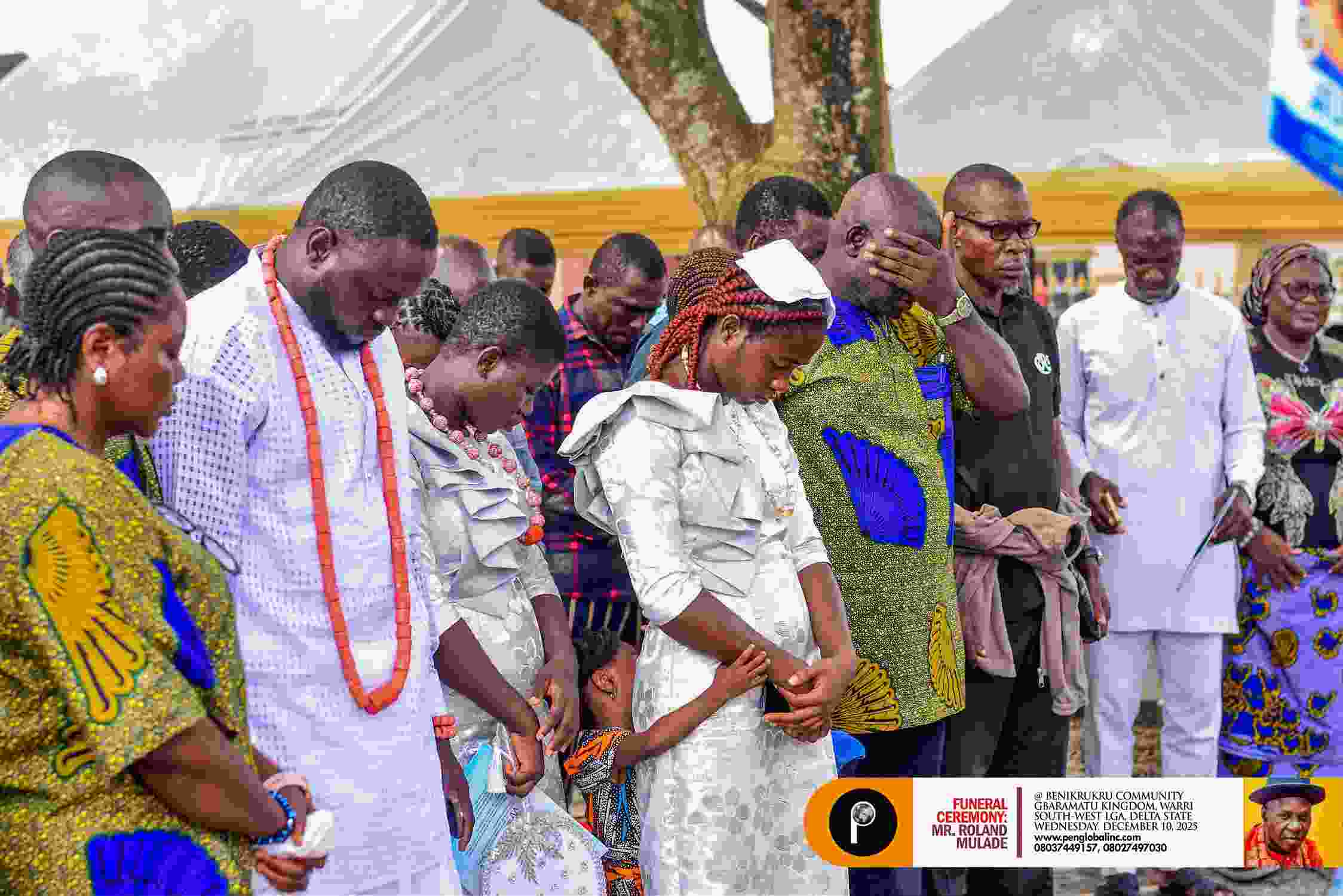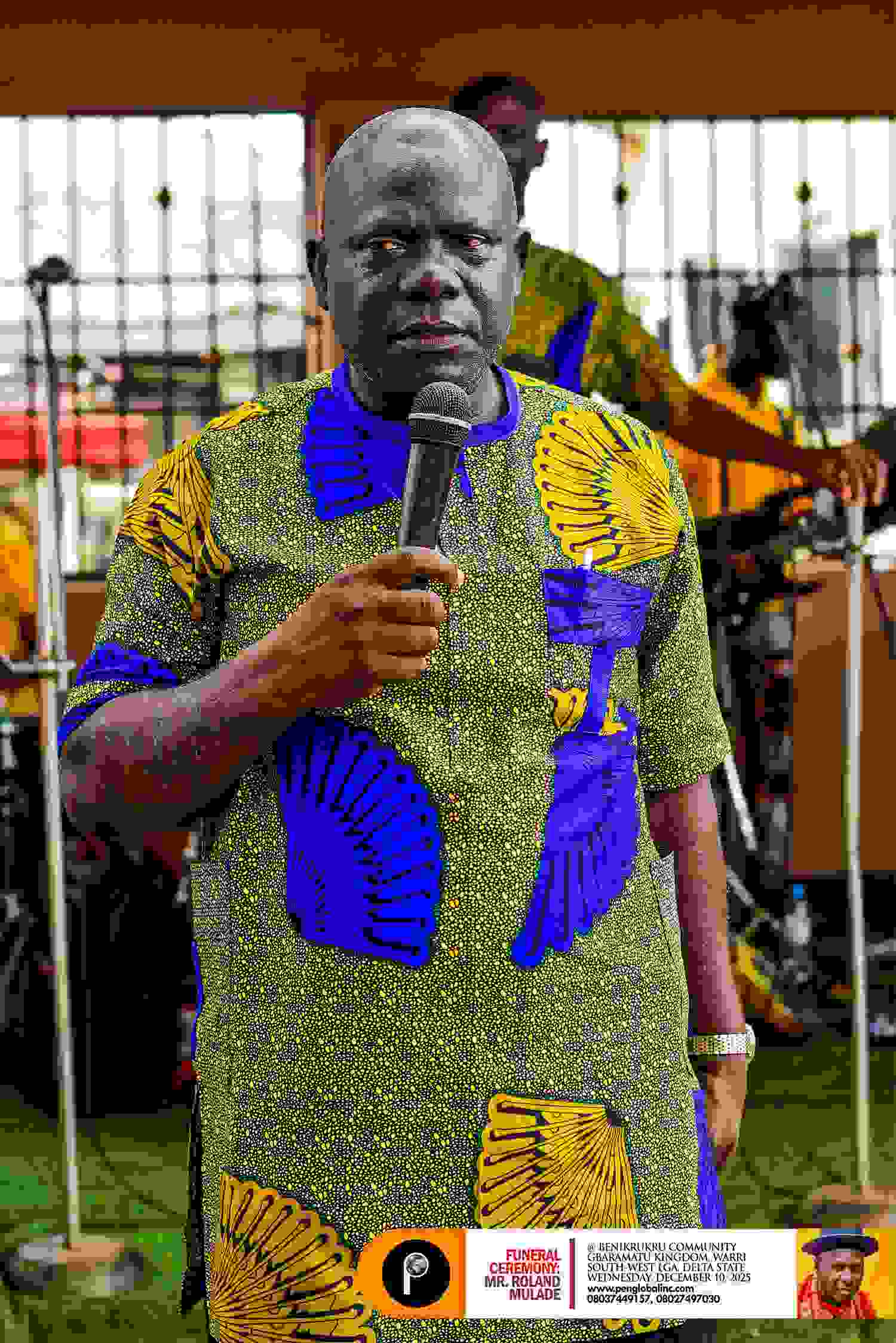 The immediate-past Registrar of the Nigeria Maritime University (NMU) Okerenkoko in the ancient Gbaramatu Kingdom, Dr. Alfred Mulade, joined members of the Mulade Dynasty and sympathisers to bid final farewell to his departed brother, Roland "Rolly" Mulade, whose burial ceremony held in Benikrukru Community on Wednesday, December 10, 2025.