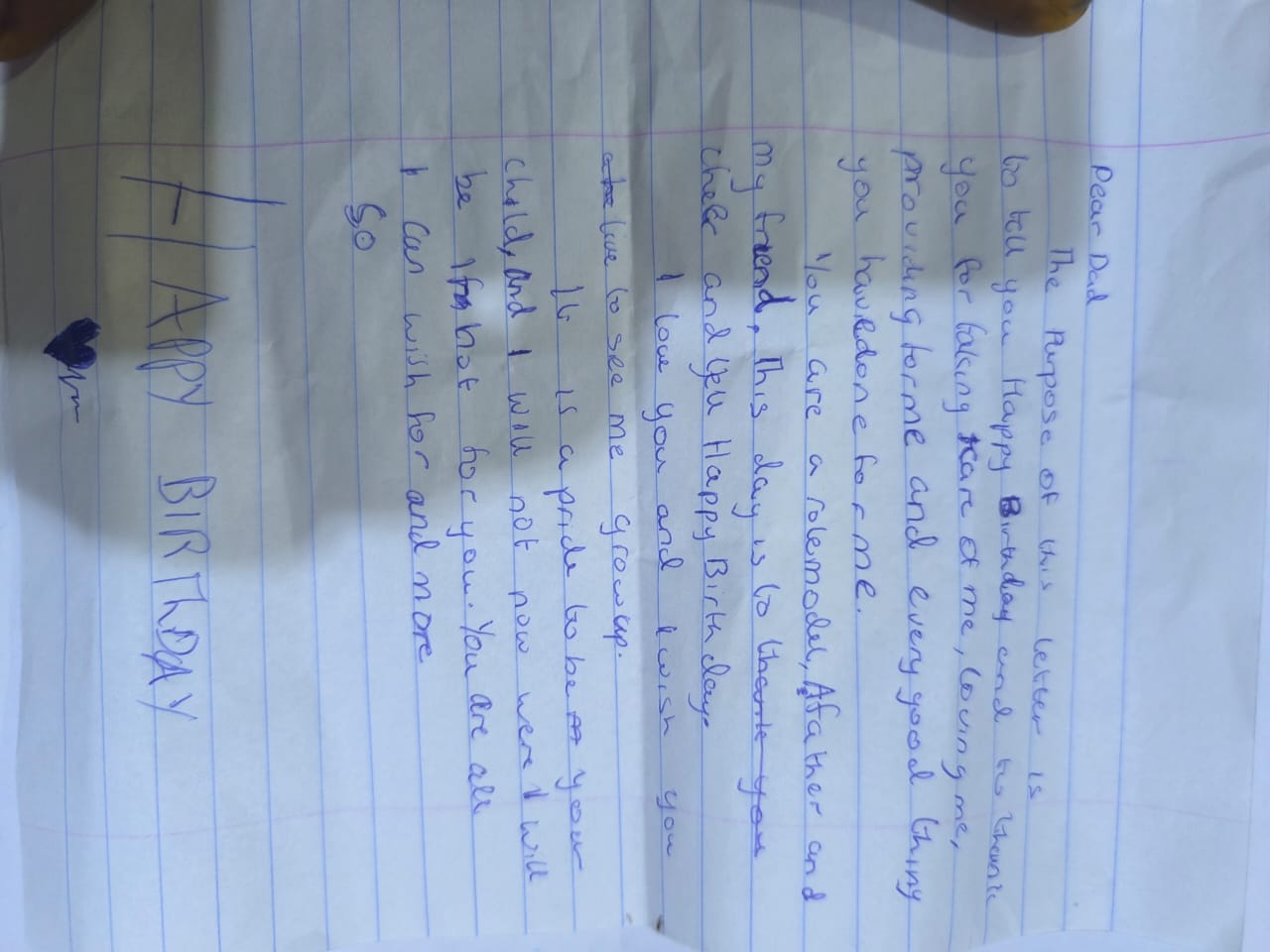 "Dear Dad, the purpose of this letter is to tell you happy birthday and to tell thank you for taking care of me, loving me, providing for me and every good thing you have done for me. You are a role model, a father and my friend. This day is to thank you chief and tell you happy birthday. I love you and I wish you long life to see me grow up, a pride to be your child and I will not know where I will be if not for you. You are all I can wish for and more. Happy Birthday," — MASTER EBISEIZIGHA BLOSSOM GBENEKAMA