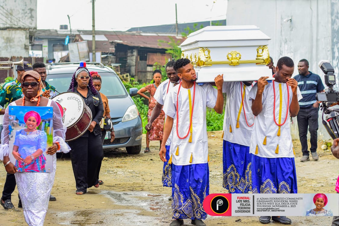 The passing of late Mrs. Felicia Yerimini Jonathan Governor to eternal glory on Thursday, October 23, 2025, after a brief illness, was a jolt upon her families and friends, who still grapple with disbelief, even as they throng the Safe Haven Mortuary at Okumagba Avenue in Warri to convey her body to her hometown, Azama community in Gbaramatu Kingdom, for the final funeral rite, on Thursday, October 6, 2025.