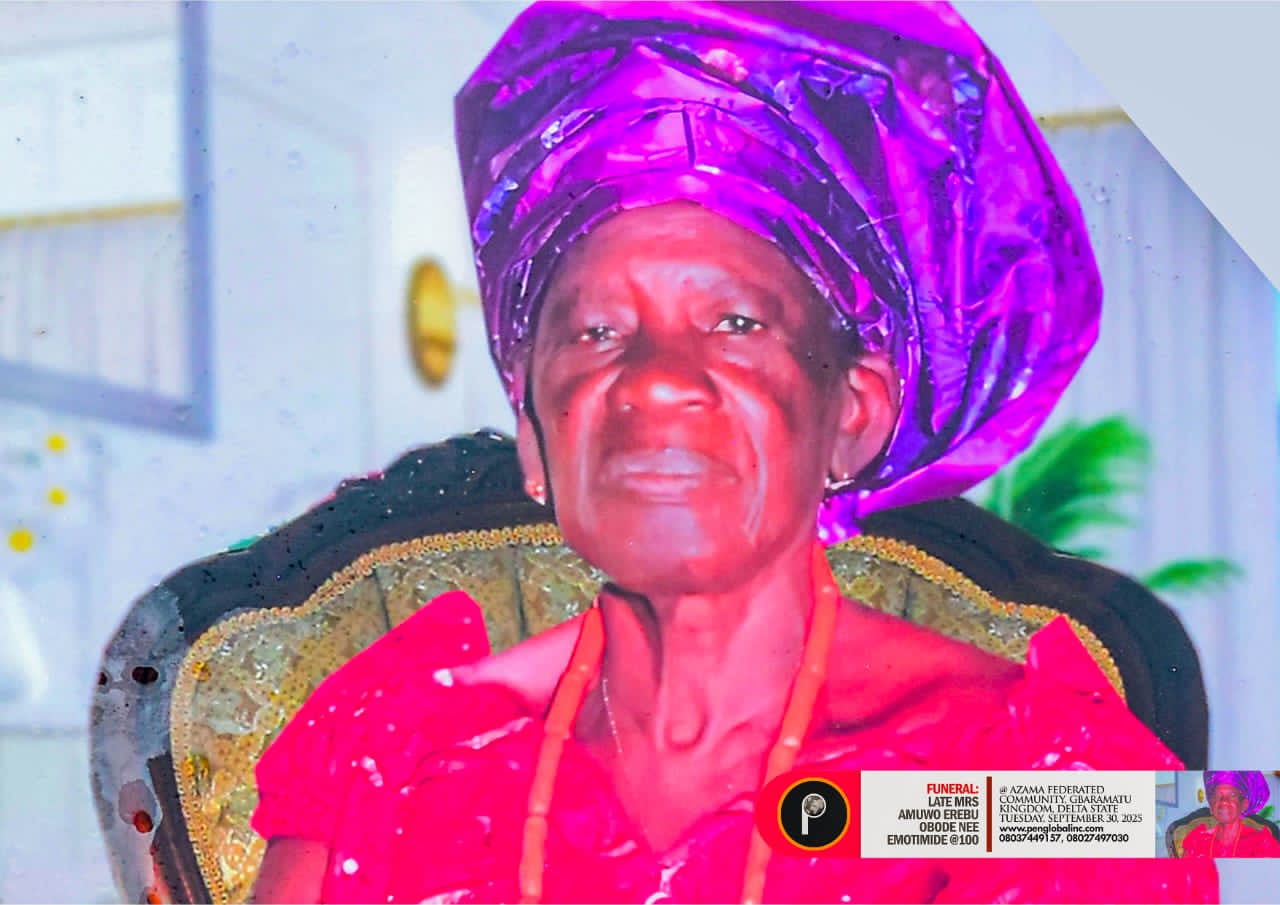We, the families of Emotimide Okoro of Aruku Idumu of Azama Town, and Okri/Ogbointu Idumu of Okerenkoko Town; and Gege Zapu of Bralabor Idumu, Benikrukru Town, all in Gbaramatu Kingdom, Warri South-West LGA of Delta State, have successful laid to rest our beloved departed daughter, sister, aunt, mother, grandmother and great grandmother, Mrs. Amuwo Erebu Obode Nee Emotimide, to rest in Azama Town, on Wednesday, October 1, 2025.